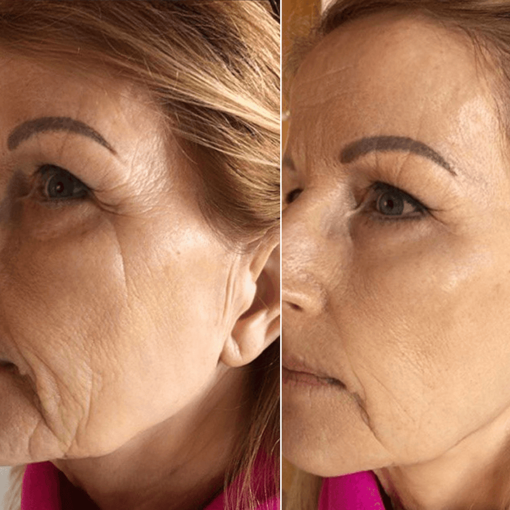 Bereits nach 2 Minuten: Eine sichtbar straffere, aufgepolsterte und strahlend jugendliche Augenpartie – für bis zu 8 Stunden.